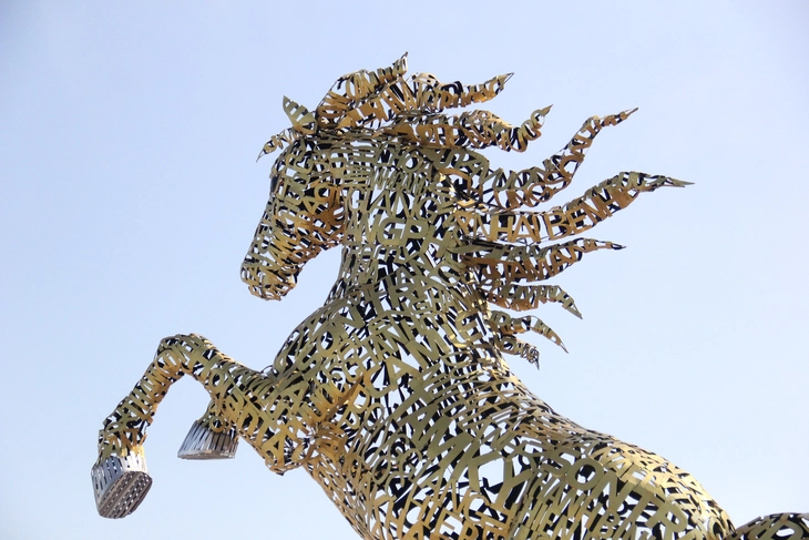 Mô hình linh vật ngựa được làm bằng kim loại, mang hình dáng một chú ngựa đang tung vó mạnh mẽ. Linh vật do nghệ nhân Đinh Văn Tâm ở Quảng Trị chế tác.