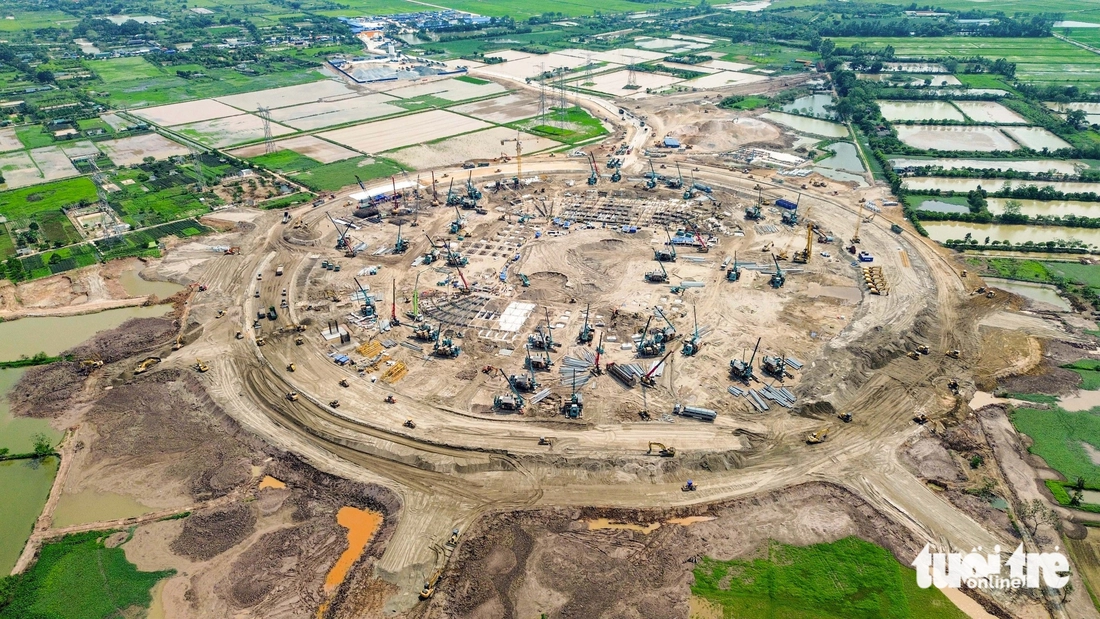 Toàn cảnh công trường sân vận động quy mô 135.000 chỗ ngồi tại phía nam Hà Nội - Ảnh: HỒNG QUANG