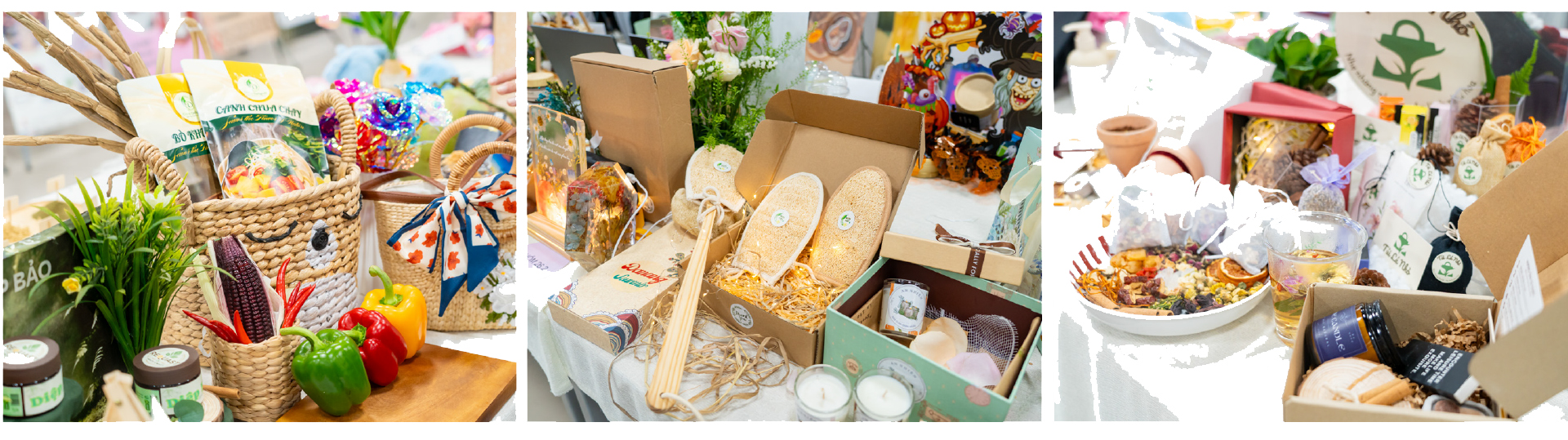 Đơn cử, tại Triển lãm sản phẩm khởi nghiệp sinh viên trong khuôn khổ học phần về khởi nghiệp, mỗi nhóm sinh viên giới thiệu một dự án khởi nghiệp xanh như túi thơm thảo mộc AromaLife, bộ dụng cụ ăn uống sinh học Green Sea, vải sáp ong Beesmart Wrap hay xà phòng thiên nhiên chiết xuất từ tinh dầu.