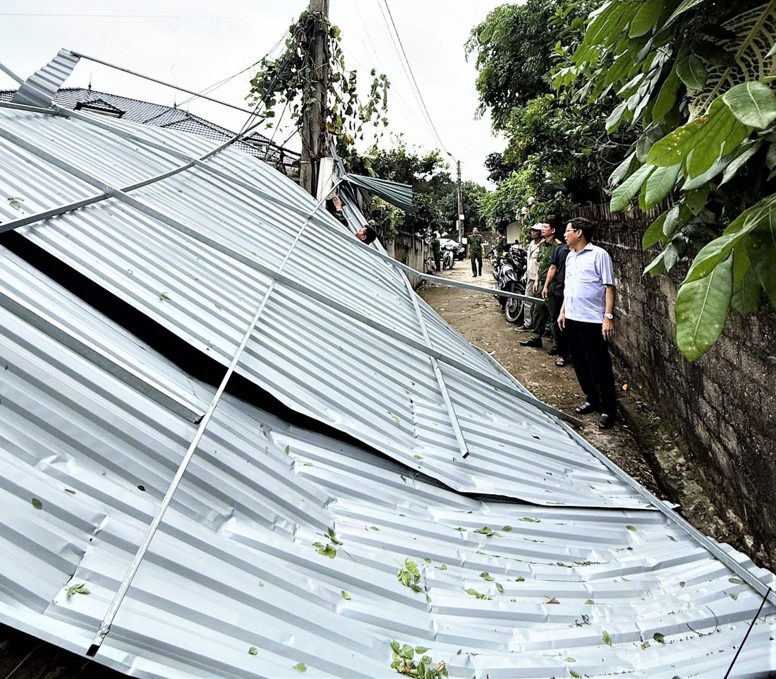 Lốc xoáy cuốn bay mái tôn - Ảnh: Xã Lập Thạch