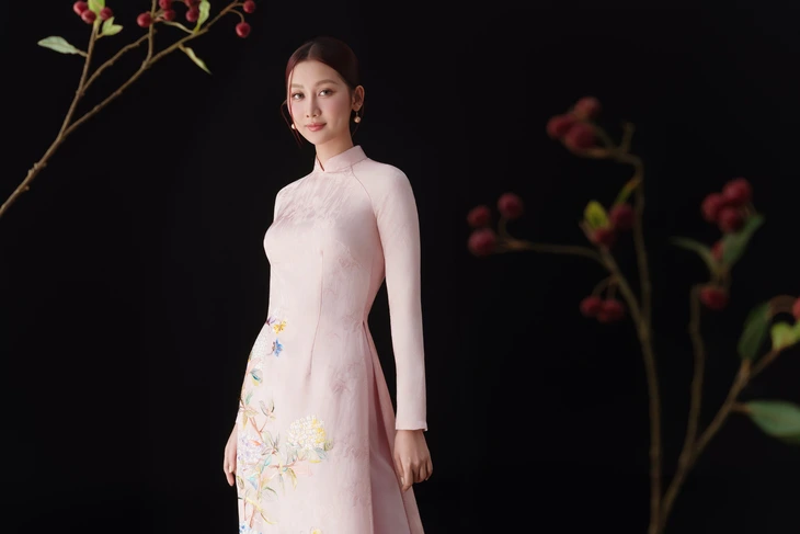 Hoa hậu Quế Anh diện áo dài của nhà thiết kế Liên Hương - Ảnh: HUỲNH TRÍ NGHĨA