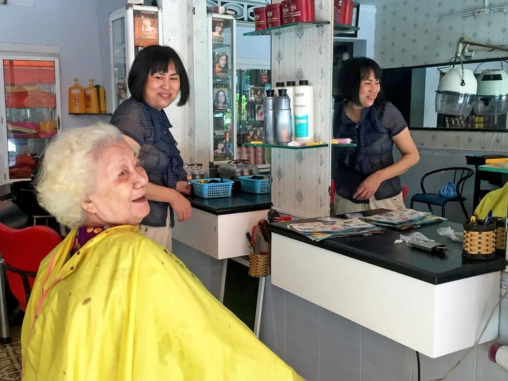 Mạ tôi cười tươi rói trong một lần “làm đầu” đón Tết - Ảnh: N.T.U.