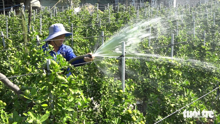 Nhà vườn ở xã Tân Dương, tỉnh Đồng Tháp chăm sóc hạnh chưng Tết - Ảnh: ĐẶNG TUYẾT