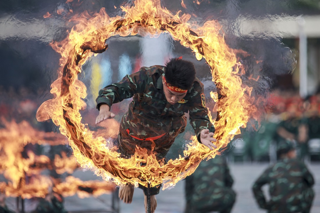 Bộ đội đặc công Quân khu 7 biểu diễn nhảy qua vòng lửa