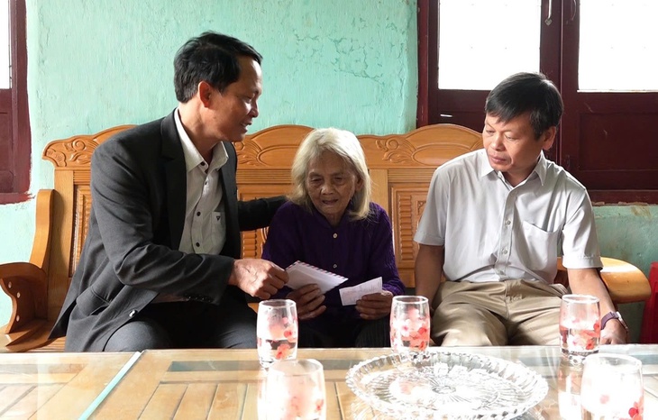 Lãnh đạo xã Tu Mơ Rông đến nhà thăm hỏi Mẹ Việt Nam anh hùng Y Tría và gửi phiếu bầu cử cho mẹ - Ảnh: BÁ THÀNH
