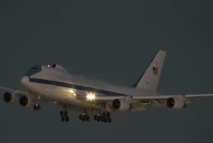 Theo báo The Sun, Boeing 747 E-4B Nightwatch là phiên bản quân sự hóa của Boeing 747-200, được thiết kế để đóng vai trò trung tâm chỉ huy trên không của Mỹ trong trường hợp xảy ra chiến tranh hạt nhân.