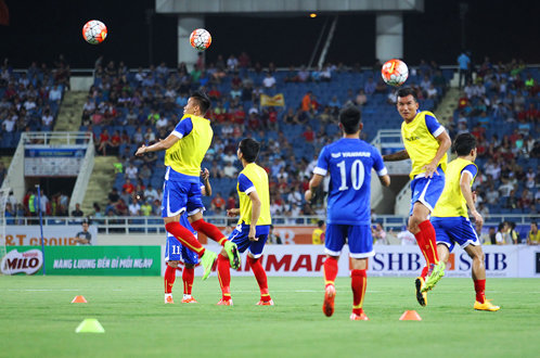 | Các cầu thủ Việt Nam khởi động trước trận - Ảnh: Nguyễn Khánh |