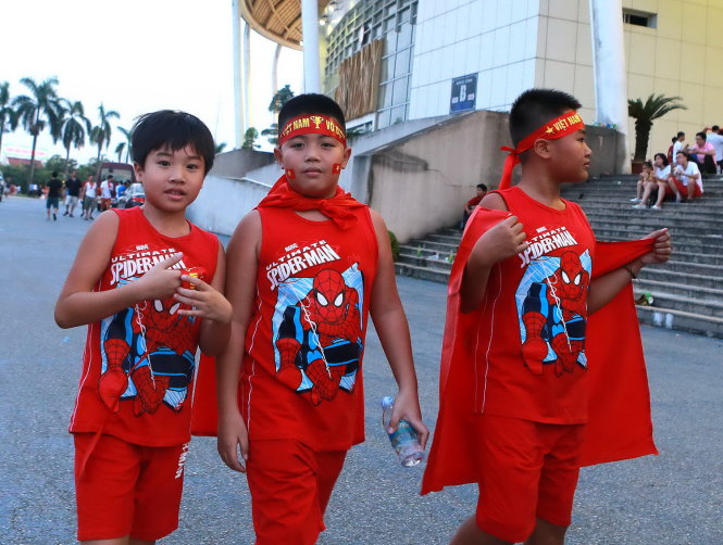 | Các CĐV nhí trước sân vận động Mỹ Đình. Ảnh: Nam Khánh |
