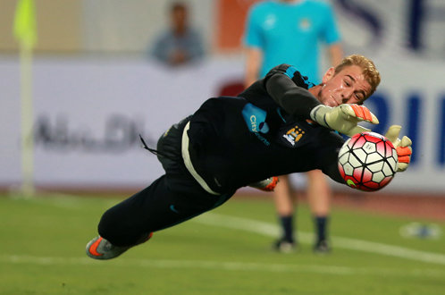 | Thủ môn Joe Hart khởi động trước trận - Ảnh: Nam Khánh |