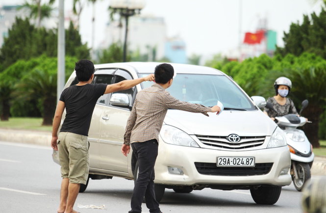 | Phe vé chào mời khách trước giờ bóng lăn với hi vọng bán hết những chiếc vé còn dư. Ảnh: Nguyễn Khánh |