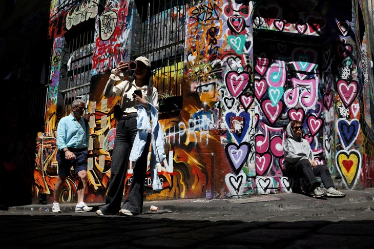 Con hẻm nghệ thuật đường phố Hosier Lane ở Melbourne với tranh tường nghệ thuật đặc trưng - Ảnh: reuters.com