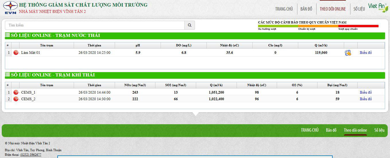 Các thông số quan trắc tự động liên tục nước thải tại Nhà máy Nhiệt điện Vĩnh Tân 2 được truyền trực tiếp 24/24 về Sở Tài nguyên và Môi trường tỉnh Bình Thuận