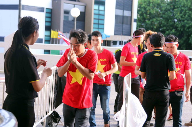 | Một CĐV VN chào kiểu người Thái. Ảnh: N.K |