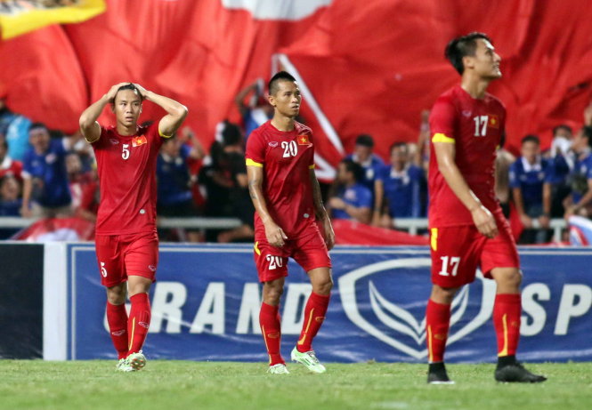 | Nỗi buồn thua trận của các tuyển thủ VN. Ảnh: N.K |