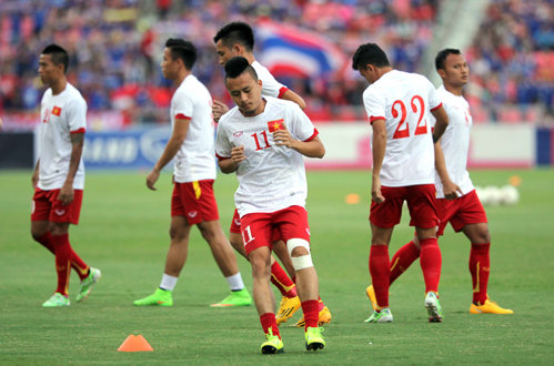 | Các cầu thủ Việt Nam khởi động trước trận đấu - Ảnh: N.K |