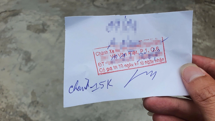 Người đàn ông tại chành xe trên đường Võ Văn Kiệt (phường Bình Tiên, TP.HCM) thu 15.000 đồng đối với một lượt xe máy đến gửi hàng - Ảnh: MINH HÒA