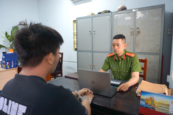 Công an phường Tăng Nhơn Phú làm việc với nghi can liên quan ma túy - Ảnh: NHẬT LỆ