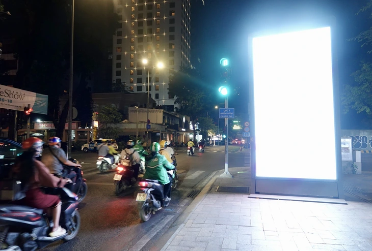 Vào lúc hơn 22h đêm 13-4, gần góc đường Nguyễn Thị Minh Khai - Phạm Ngọc Thạch vẫn tồn tại bảng quảng cáo gây chói mắt người tham gia giao thông, một mặt thể hiện chữ VNPT. Trong khi đó, trên đường Tôn Đức Thắng cũng có bảng quảng cáo của Vinama sáng đèn, chiếm dụng vỉa hè.