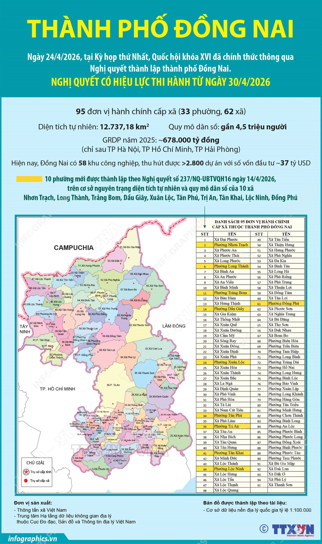 Một số thông tin về TP Đồng Nai mới được thành lập