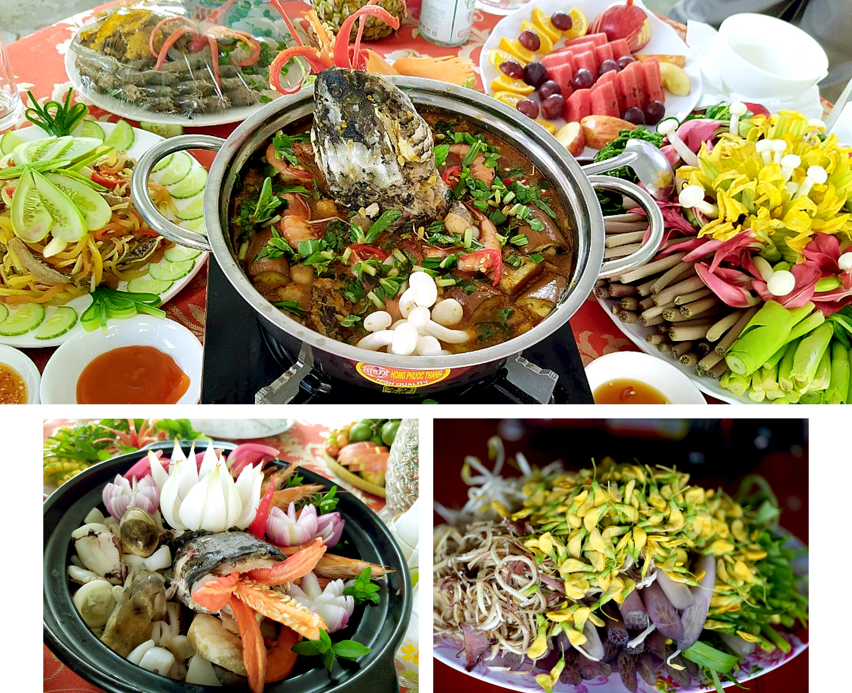 Lẩu mắm miền Tây mỗi tỉnh có “đồ bổi” khác nhau. Nhưng bất di bất dịch nguyên liệu chính vẫn là mắm cá linh, cá sặc hoặc cả hai loại mắm này phối với nhau. Vị thơm của mắm cá sặc, vị ngọt béo của mắm cá linh cho hương vị lẩu mắm ngon khó cưỡng. Rau cho lẩu mắm cũng tùy mùa. Nhưng thật tuyệt vời khi trong lẩu mắm lại có bông điên điển