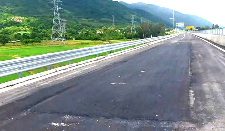 Mặt đường cao tốc Vân Phong - Nha Trang (đoạn phía bắc) bị hư hỏng, phải vá, dù chưa đưa vào sử dụng - Ảnh: D.P.
