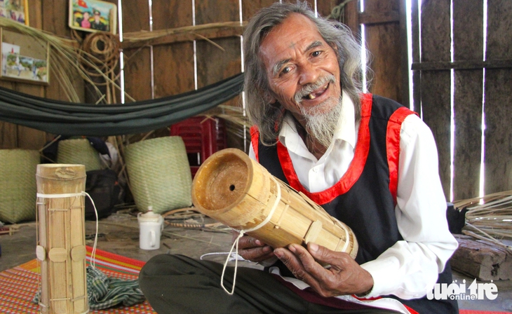Hiện nay, ông Chamalea Âu là một trong số ít người Raglay chế tác được đàn Chapi và nhiều loại nhạc cụ Raglay khác - Ảnh: ĐỨC CƯỜNG