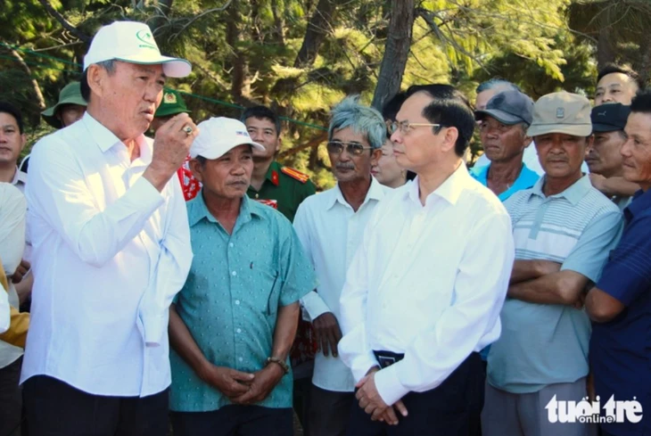 Phó thủ tướng Bùi Thanh Sơn trong chuyến thăm hỏi, động viên người dân vùng dự án Nhà máy điện hạt nhân Ninh Thuận 2 hồi tháng 1-2026 - Ảnh: ĐỨC CƯỜNG