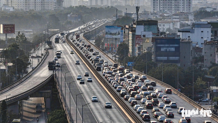 Dòng xe ùn trên cao tốc Pháp Vân - Cầu Giẽ dù chưa hết kỳ nghỉ Tết - Ảnh: HỒNG QUANG
