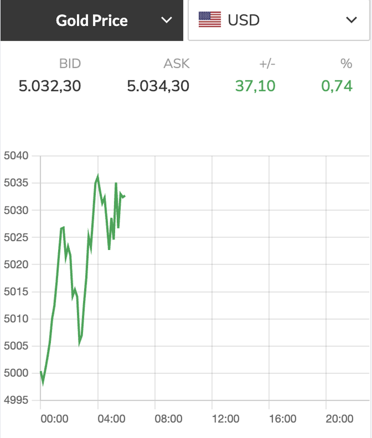 Giá vàng thế giới vượt 5.035 USD/ounce