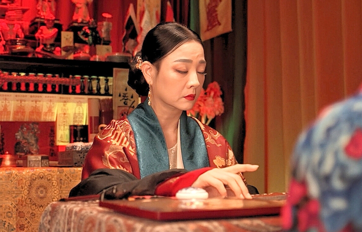 Trong phim, chị vào vai Cậu Sáu - người chuyên xem bói, lên đồng, có tham vọng và nắm quyền lực tinh thần, chi phối suy nghĩ của bà Mai (Hồng Ánh).