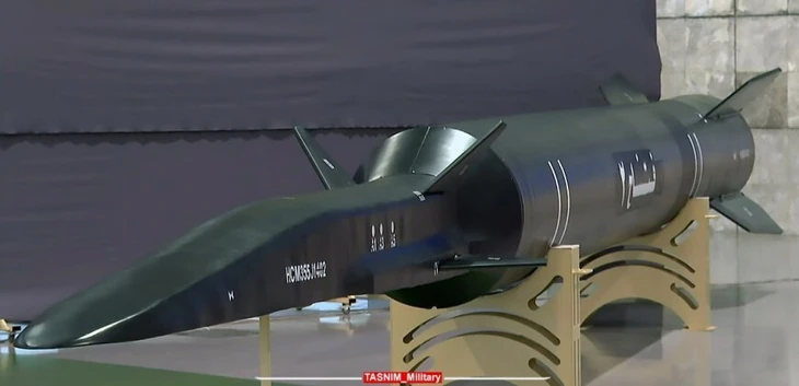 Mô hình tên lửa Fattah-2 với phương tiện lướt siêu thanh - Ảnh: Military Watch