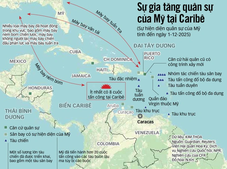 Kể từ cuối tháng 8, để "chống buôn bán ma túy" như ban đầu tuyên bố, lực lượng vũ trang Mỹ tập trung lực lượng quân sự lớn nhất trong nửa thế kỷ ở phía nam Caribe. Lực lượng đặc nhiệm liên hợp "Ngọn giáo phương Nam" gồm 11 tàu chiến, trong đó có tàu sân bay USS Gerald R. Ford lớn nhất và hiện đại nhất, cùng 15.000 binh sĩ.