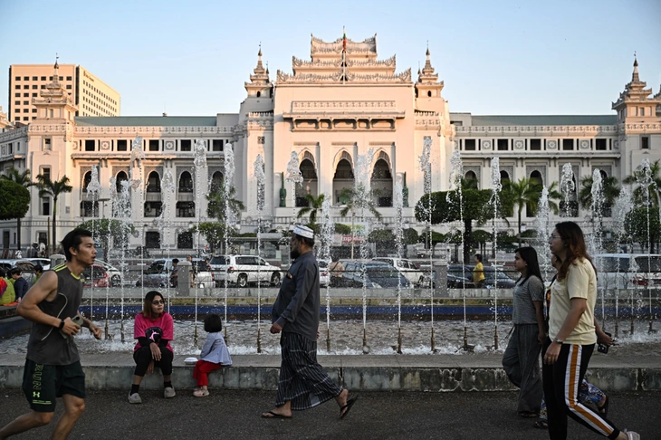 Ảnh chụp trước tòa thị chính Yangon ngày 27-12, một ngày trước cuộc tổng tuyển cử ở Myanmar - Ảnh: AFP