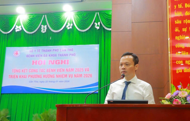 PGS.TS Hoàng Quốc Cường - Giám đốc Sở Y tế TP Cần Thơ - phát biểu tại lễ tổng kết - Ảnh: T.LŨY