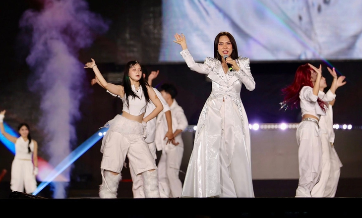 Ca sĩ Mỹ Tâm biểu diễn tại lễ bế mạc Năm Du lịch quốc gia 2025 ở Huế - Ảnh: LÊ ĐÌNH HOÀNG