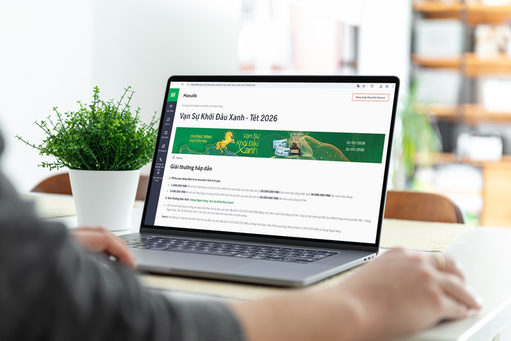 Chương trình khuyến mại "Vạn sự khởi đầu xanh - Tết 2026" được áp dụng cho khách hàng cá nhân tham gia bảo hiểm qua kênh phân phối đại lý. Để xem thông tin chi tiết về thể lệ, khách hàng truy cập website www.manulife.com.vn, liên hệ tổng đài 1900 1776 hoặc thông qua kênh tư vấn trực tuyến Live Chat trên ứng dụng Manulife Vietnam.