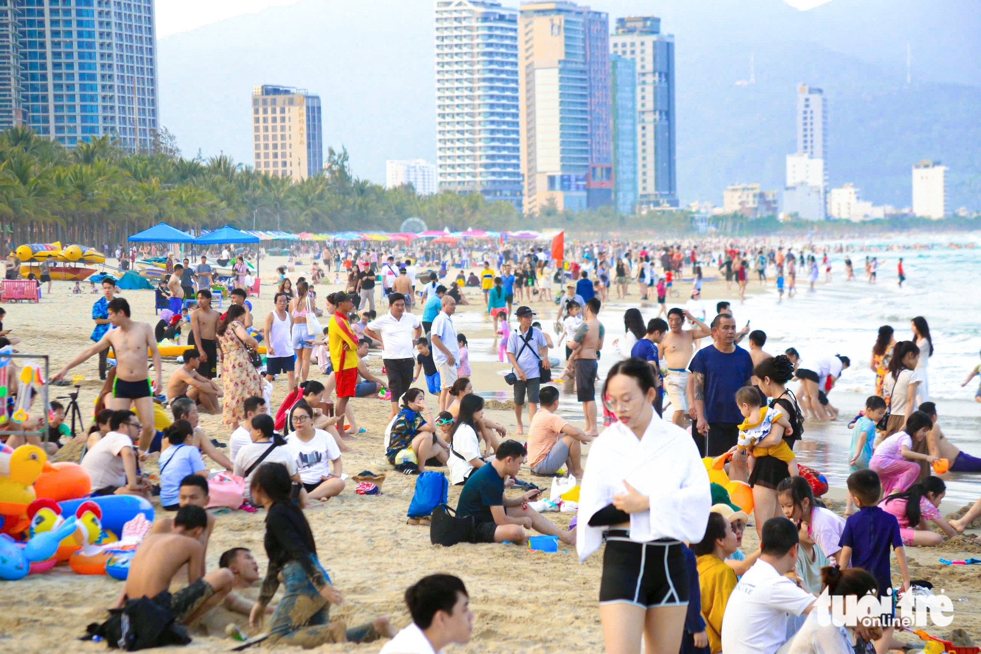 Tại các khu vực như bãi biển Mân Thái và bãi biển Phạm Văn Đồng, Nguyễn Tất Thành... lượng người đổ về tắm mát và vui chơi vào buổi chiều cũng rất đông - Ảnh: THANH NGUYÊN
