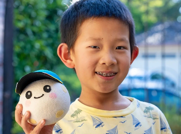 Cậu bé Lucas Ye tự tay thiết kế và làm thú bông "Rise" - Ảnh: FREELANCER