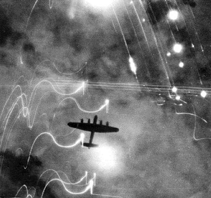 Máy bay ném bom Lancaster của Không quân Hoàng gia Anh trên bầu trời Hamburg - Ảnh: RAF