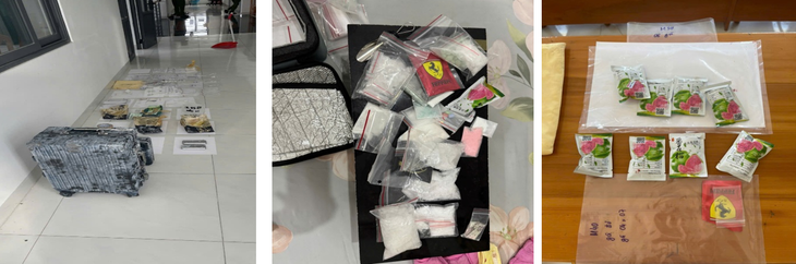 Công an xã Sơn Mỹ phối hợp kiểm tra và phát hiện bên trong vali có nhiều túi chứa tinh thể màu trắng, bột màu cam, viên nén cùng nhiều cân tiểu ly. Qua giám định, các chất trong vali là ma túy loại ketamine và methamphetamine với tổng khối lượng 2,7298kg.