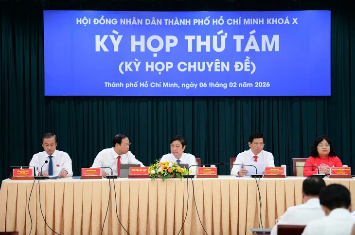 Chủ tịch HĐND TP.HCM Võ Văn Minh (giữa) và các Phó chủ tịch HĐND TP chủ trì một kỳ họp HĐND TP.HCM khóa X. Kỳ họp đầu tiên của khóa XI dự kiến sẽ khai mạc ngày 30-3-2026 - Ảnh tư liệu: QUANG ĐỊNH