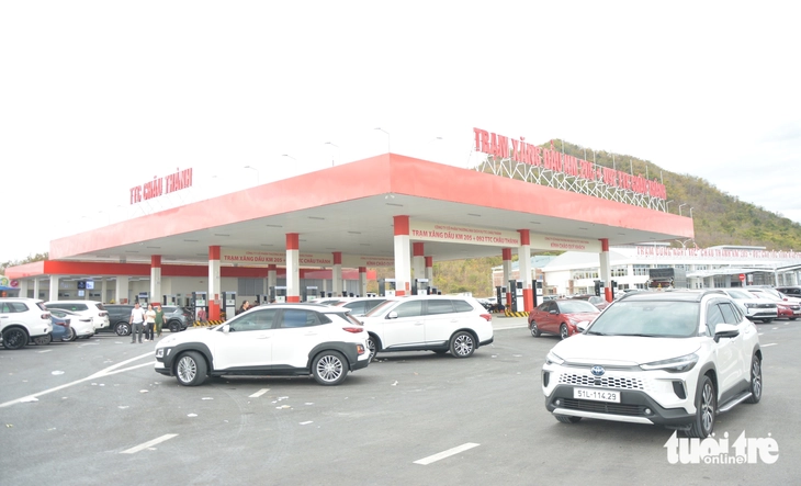 Trạm dừng nghỉ Km205+092 cao tốc Vĩnh Hảo - Phan Thiết chính thức mở bán xăng dầu từ sáng 11-2 - Ảnh: ĐỨC TRONG