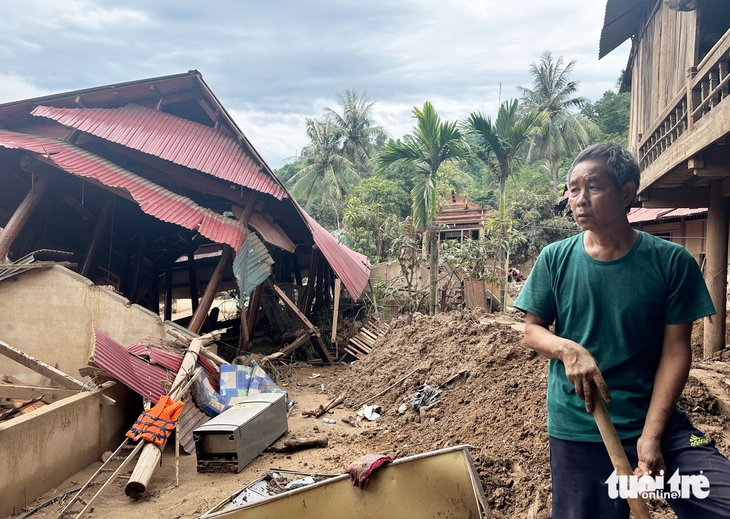 Một gia đình ở xã Mỹ Lý, Nghệ An bị trôi nhà do mưa lũ vào tháng 7-2025 - Ảnh: DOÃN HÒA