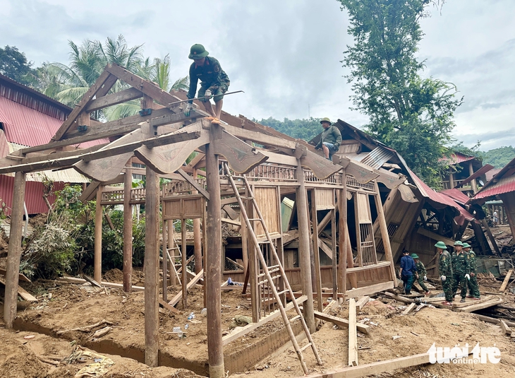 Các chiến sĩ bộ đội hỗ trợ sửa nhà ở cho người dân vùng lũ xã Mỹ Lý, Nghệ An - Ảnh: DOÃN HÒA