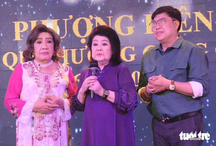 Nghệ sĩ Phượng Liên (giữa) bật khóc bên người em Lệ Thủy và đạo diễn Thanh Hiệp - Ảnh: LINH ĐOAN