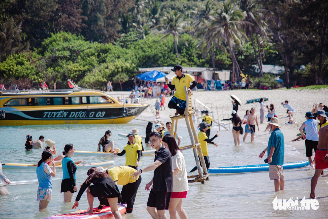Du khách vui chơi, tắm biển tại bãi Hòn Tranh, đảo Phú Quý, tỉnh Lâm Đồng (Bình Thuận trước đây) - Ảnh: NGUYỄN VĂN GIỞI