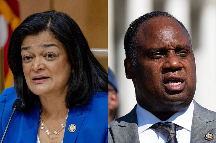 Các nghị sĩ Đảng Dân chủ tại Hạ viện Mỹ Pramila Jayapal (trái) và Jonathan Jackson - Ảnh: GETTY