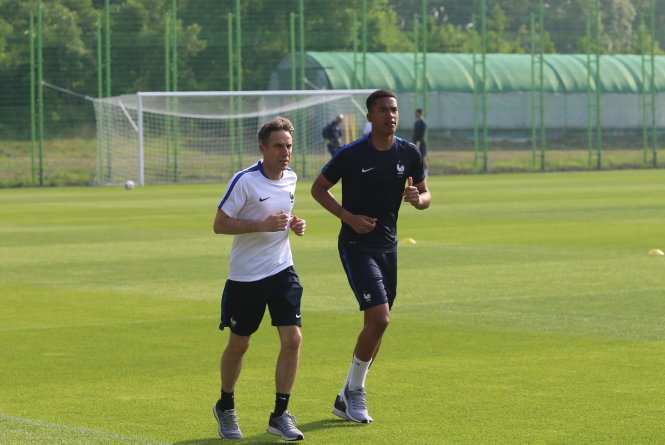 | Lafont (phải) tập riêng trong buổi tập chiều 24-5. Ảnh: H.Đ |
