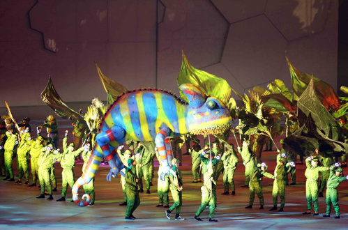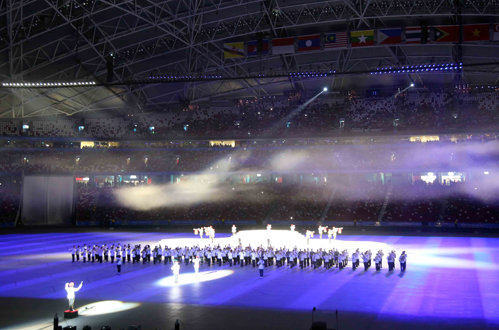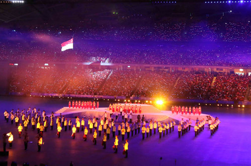 Buổi lễ khai mạc kéo dài 2 tiếng là bữa tiệc âm thanh, ánh sáng với thông điệp rất rõ ràng của nước chủ nhà Singapore là đề cao sức tưởng tượng và sự sáng tạo của tuổi trẻ.