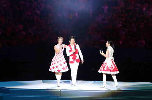 19g26: ba MC cùng Nina nói với khán giả "Hãy thưởng thức buổi trình diễn".